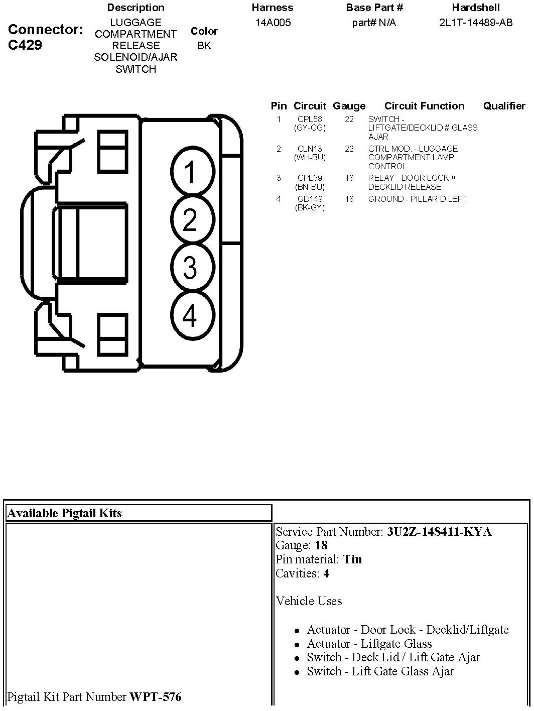 Trunk / Liftgate Ajar Switch
