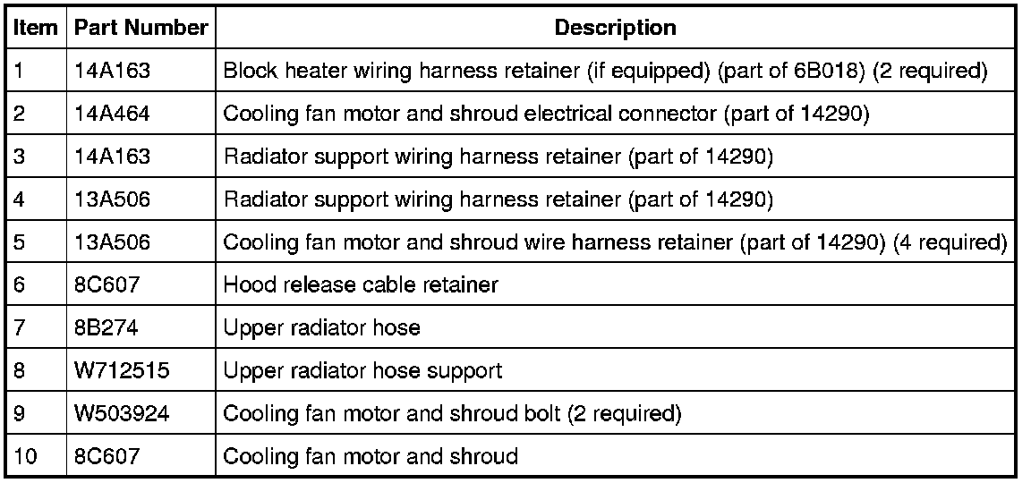 4. Disconnect the cooling fan motor electrical connector and detach the all the wiring harness retainers from the shroud.