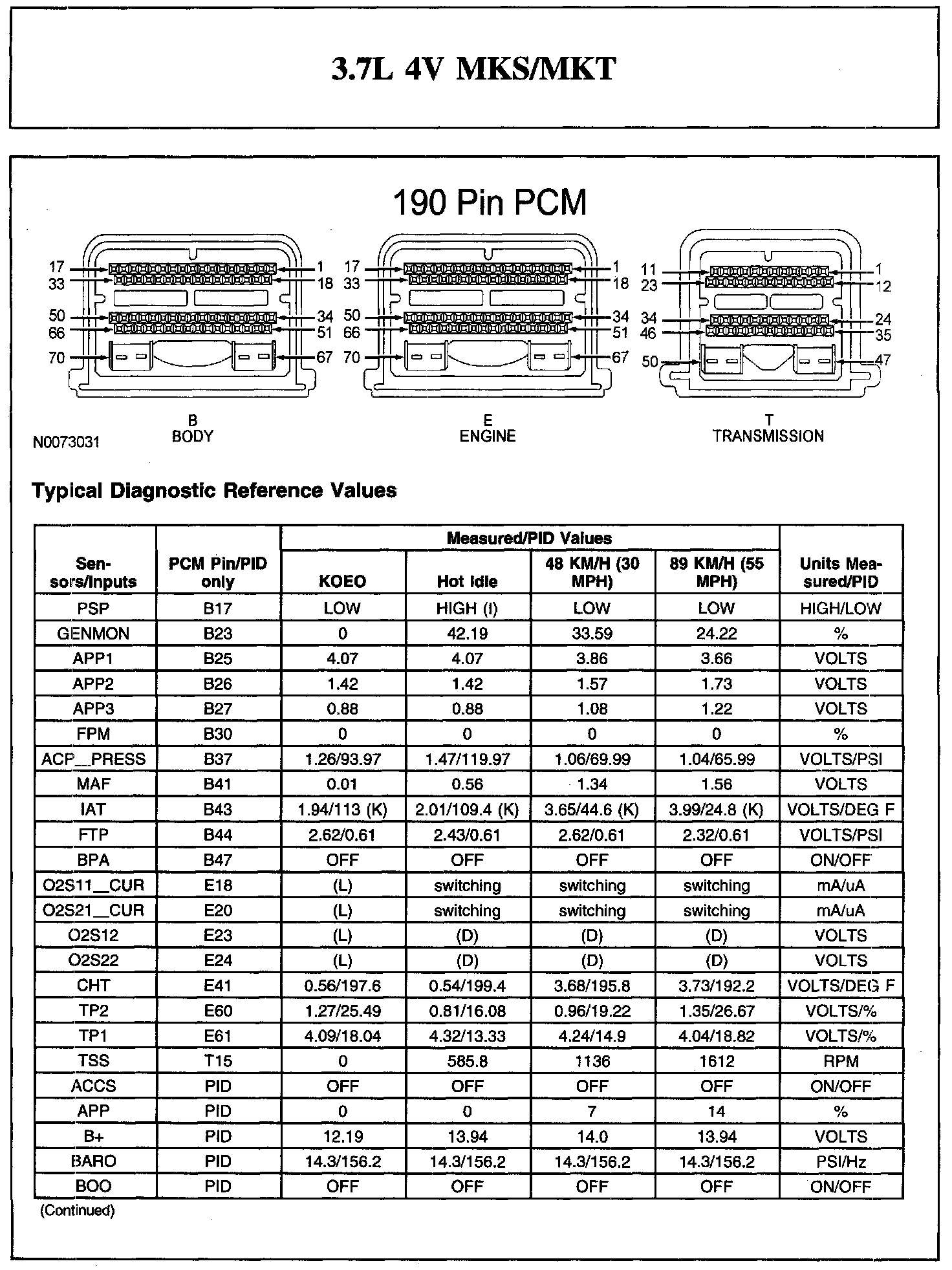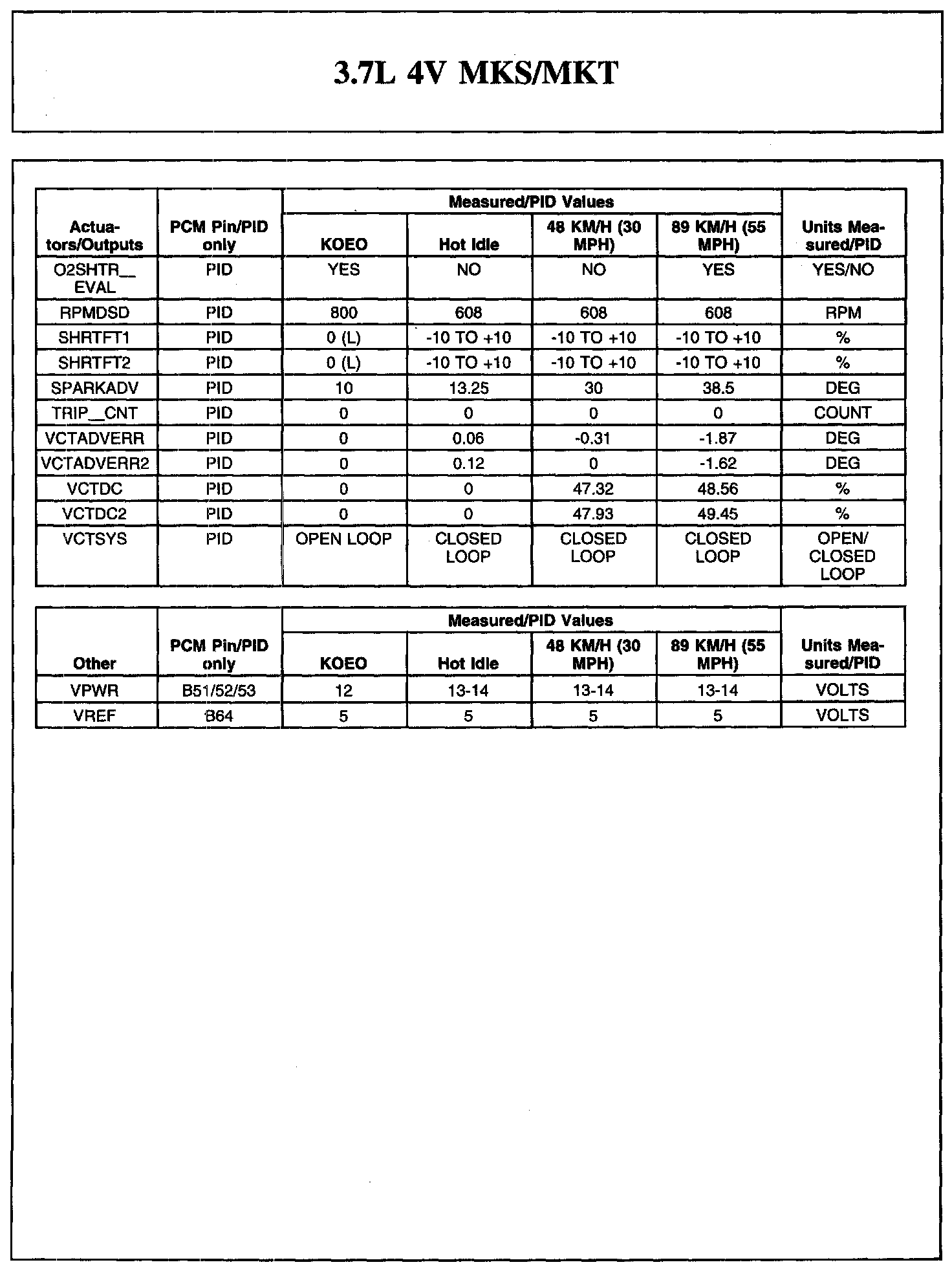 The Typical Diagnostic Reference Value Charts do not display fault parameter identifications (PIDs). These are PIDs which indicate a hard fault with the circuit. They display a value of YES or NO and are PIDs ending with the letter F.
