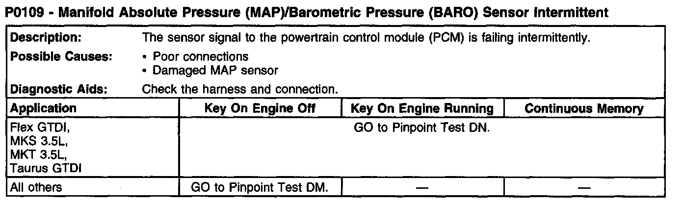 P0109 - Manifold Absolute Pressure (MAP)/Barometric Pressure (BARO) Sensor Intermittent: