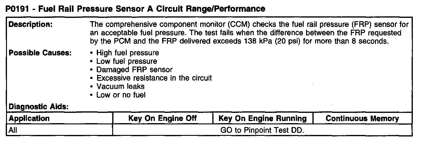 P0191 - Fuel Rail Pressure Sensor A Circuit Range/Performance:
