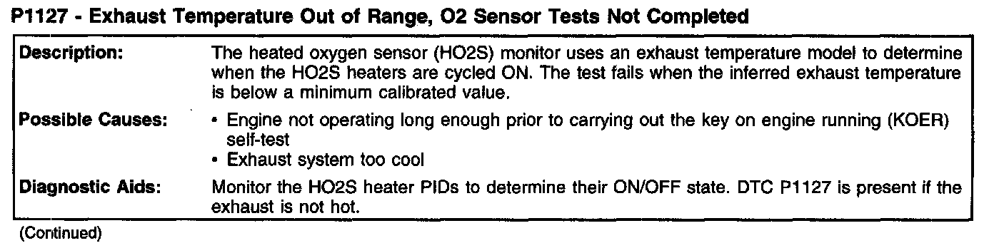 P1127 - Exhaust Temperature Out Of Range, O2 Sensor Tests Not Completed (Part 1):