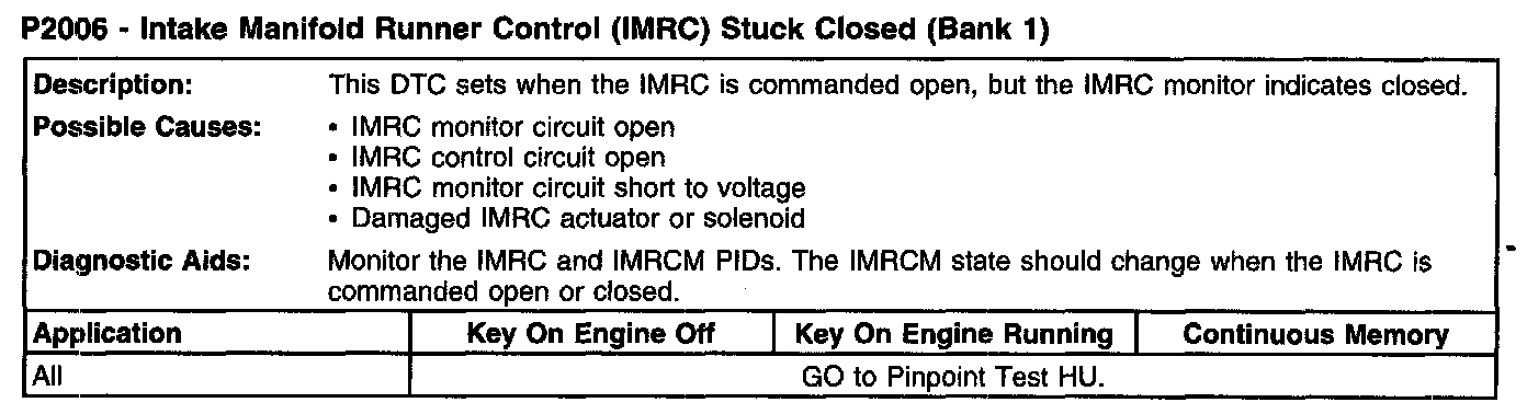 P2006 - Intake Manifold Runner Control (IMRC) Stuck Closed (Bank 1):