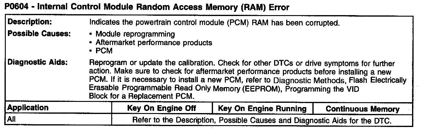 P0604 - Internal Control Module Random Access Memory (RAM) Error: