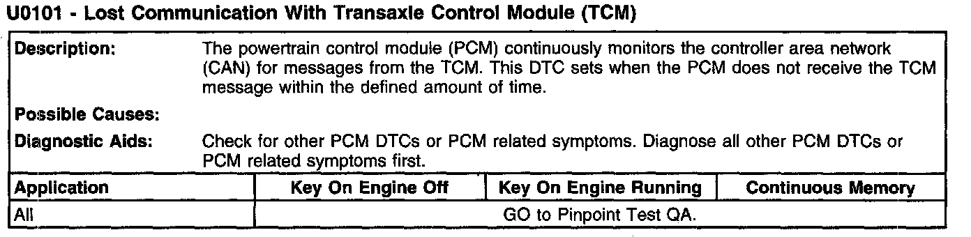 U0101 - Lost Communication With Transaxle Control Module (TCM):