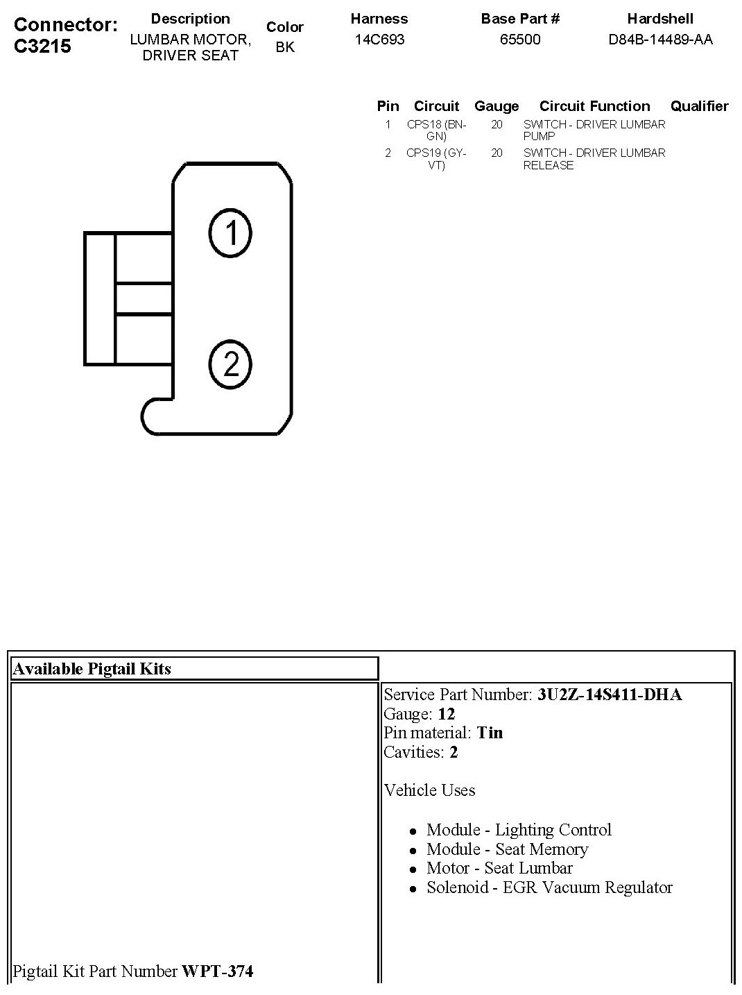 Lumbar Motor, Driver Seat