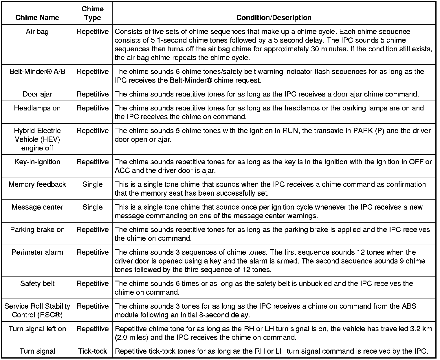 Instrument Panel Cluster (IPC) Chime Characteristics