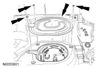5. NOTE: This step will remove approximately one-fourth tank of the fuel from a completely full fuel tank and the majority of any residual fuel in the fuel tank filler pipe, lowering the fuel level below the Fuel Pump (FP) module mounting flange.