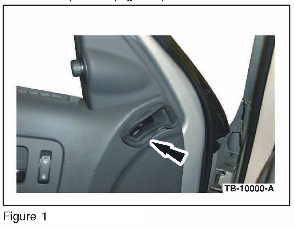 2. Remove the door trim panel. Refer to Workshop Manual (WSM), Section 501-05.