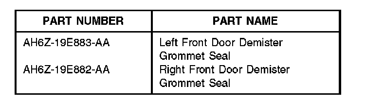Some 2010 MKZ may exhibit a demister grommet seal on the front door which is damaged, distorted or does not return to its original form when opening or closing the door. These concerns are due to the seal material. It is no longer necessary to replace the entire door trim panel.