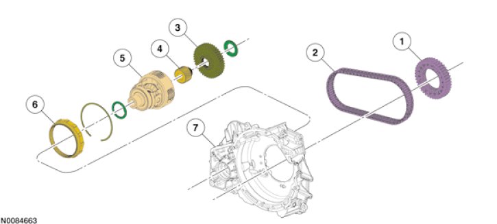The center planetary ring gear is splined to the rear planetary carrier and transfers power from the center planetary gearset to the rear planetary gearset in 3rd gear, from the rear planetary gearset to the center planetary gearset in 4th gear and is held stationary by the low One-Way Clutch (OWC) and low/reverse clutch in 1st gear and reverse.