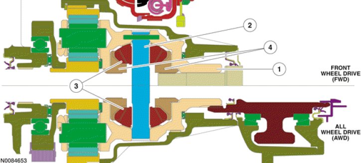 The differential allows the halfshafts and wheels to rotate at different speeds during cornering and transfers power to the Power Transfer Unit (PTU) for All-Wheel Drive (AWD) vehicles.