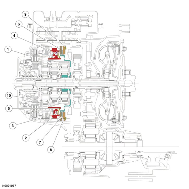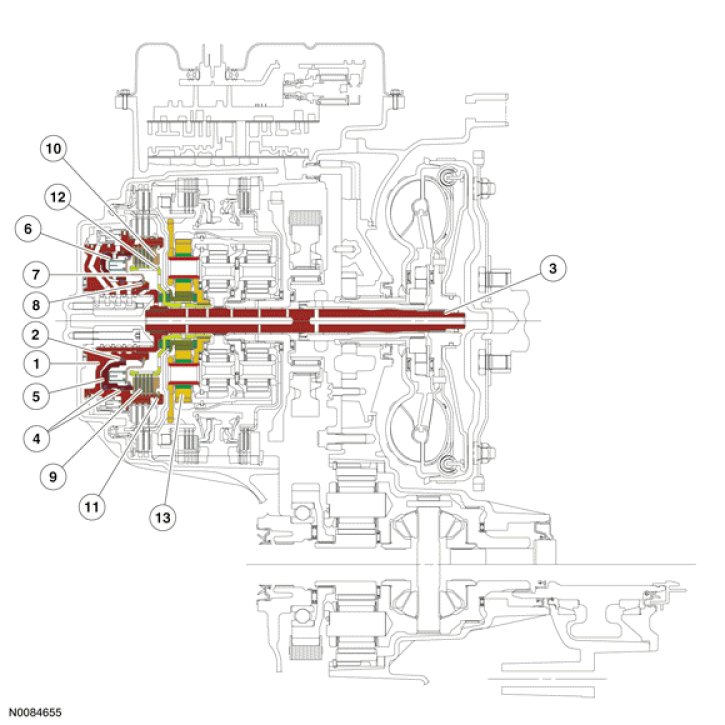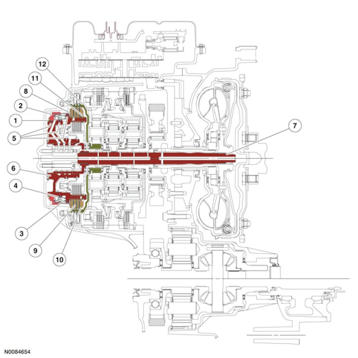 The low/reverse clutch is a brake clutch that holds the low OWC which is splined to the rear planetary carrier. The low/reverse clutch is applied in manual LOW, REVERSE and 1st gear up to 6 km/h (4 mph).