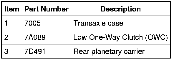 The low OWC is a brake clutch that holds the rear planetary carrier in one direction and allows it to freewheel in the opposite direction which eliminates engine braking in 1st gear when the transaxle is in DRIVE. The low OWC is also the pressure plate for the intermediate (2, 6) clutch.