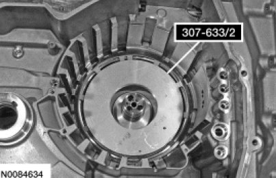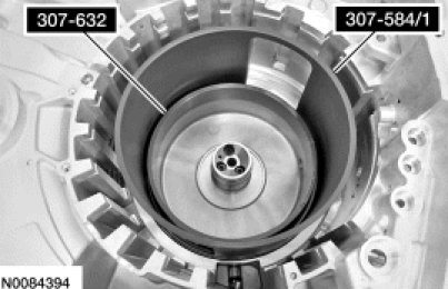 14. Using Forward/Intermediate Spring Compressor 307-584/1, push the intermediate (2, 6) clutch piston into the clutch cylinder by hand.