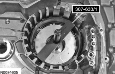 18. Install the 2-6 Piston Return Spring Compressor 307-633/2 on the transaxle case to center the intermediate (2, 6) clutch return spring.