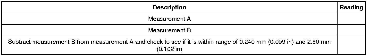 34. Subtract measurement B from measurement A The clearance should be between 0.240 mm (0.009 in) and 2.60 mm (0.102 in). If the clearance is out of range, check the intermediate (2, 6) clutch pack for correct installation. If the intermediate (2, 6) clutch pack is correctly installed, install a new clutch pack.