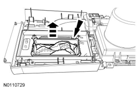 4. Lift the arm rest, apply the emergency brake, pull directly up on the selector lever bezel and remove it from the center console.