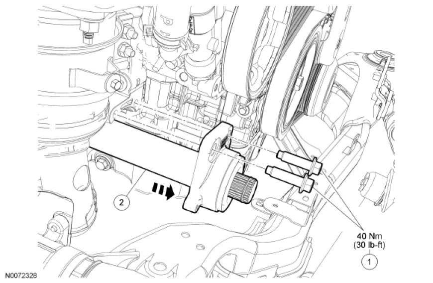 - Tighten to 40 Nm (30 lb-ft).