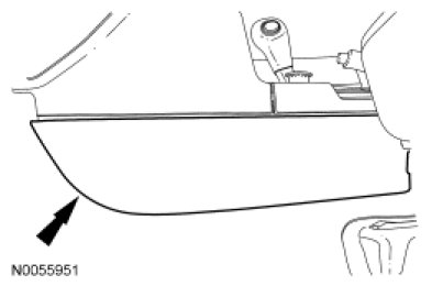 4. Remove the LH floor console trim panel. For additional information, refer to Instrument Cluster / Carrier &/or Interior Moulding / Trim.
