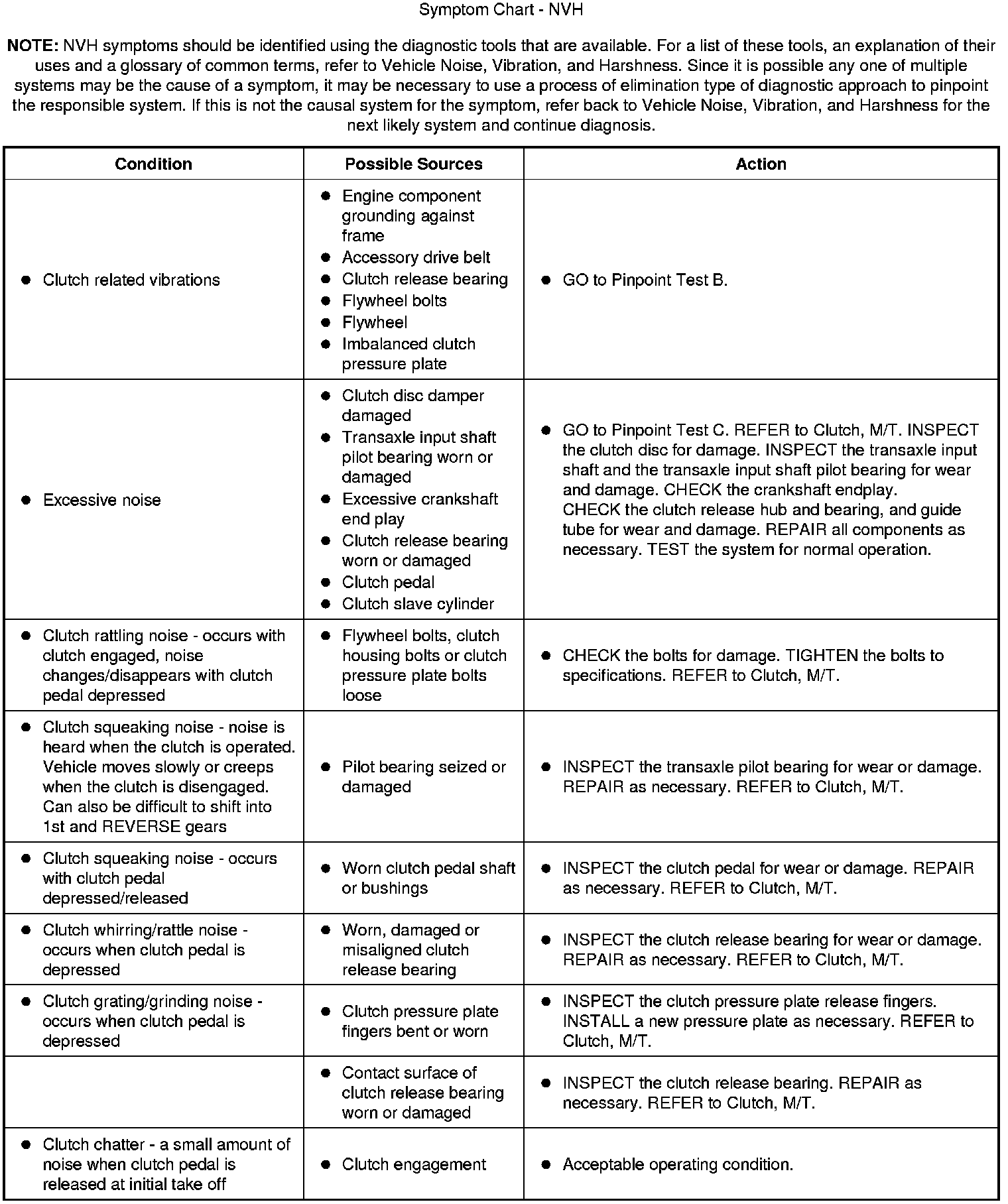 Symptom Chart - NVH