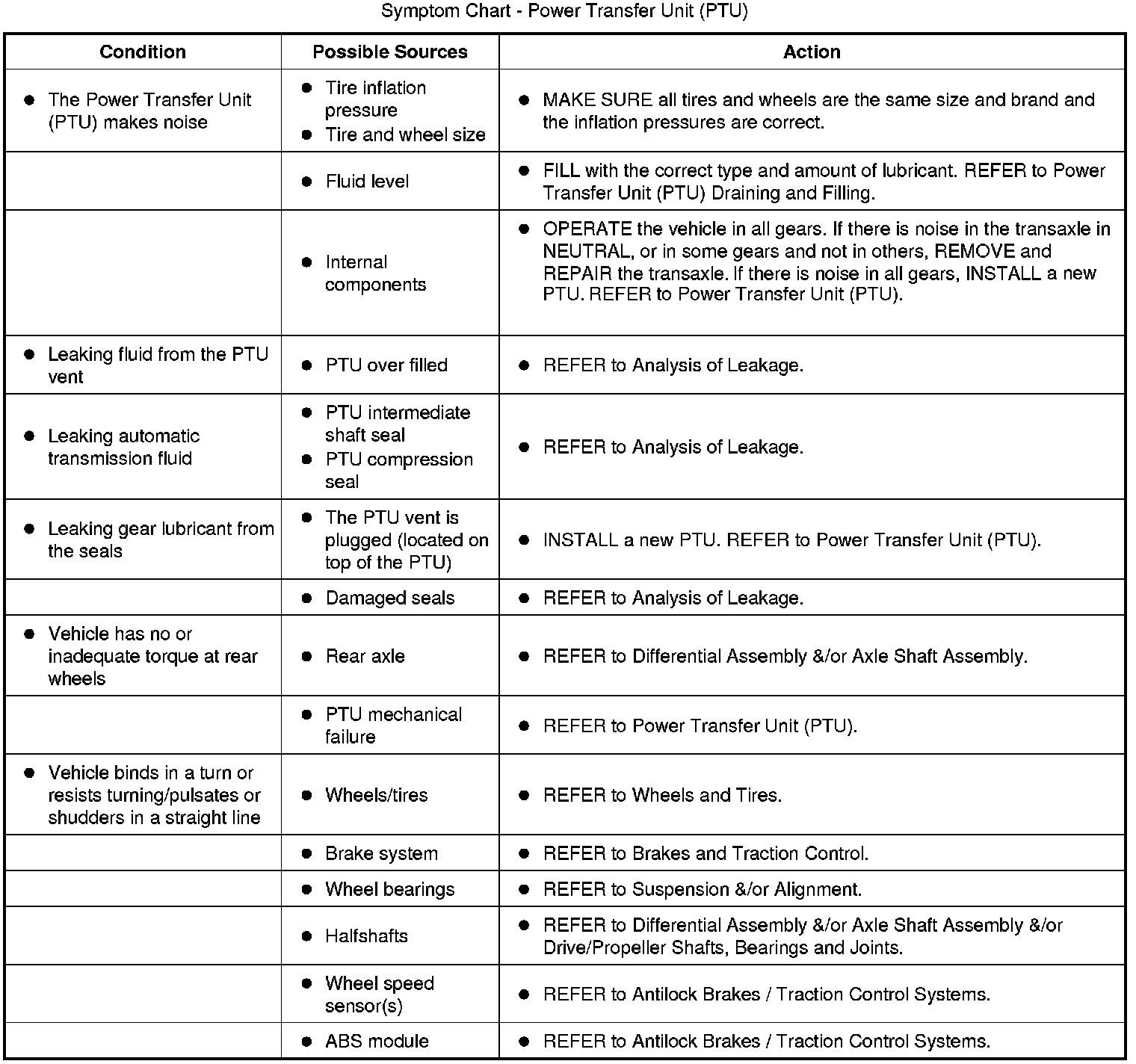Symptom Chart - Power Transfer Unit (PTU)
