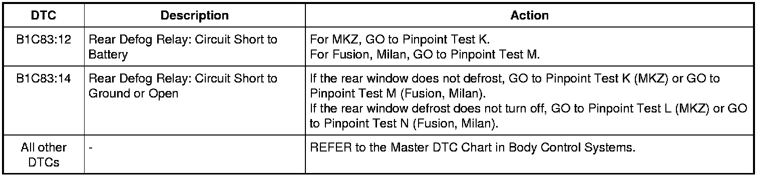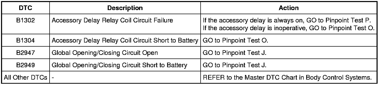 NOTE: This module utilizes a 5-character DTC followed by a 2-character failure type code. The failure type code provides information about specific fault conditions such as opens or shorts to ground. CMDTCs have an additional 2-character DTC status code suffix to assist in determining DTC history.