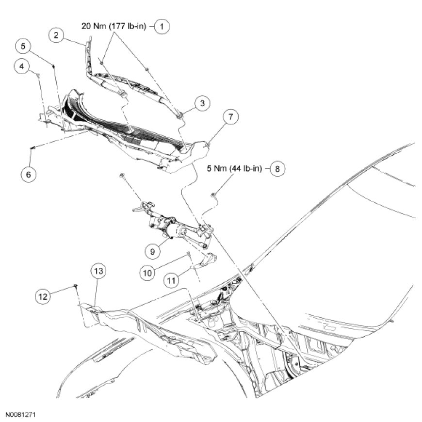 4. Remove the 2 bolts from the upper cowl panel grille.