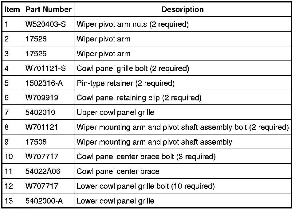 3. Remove the 2 pin-type retainers from the upper cowl panel grille.