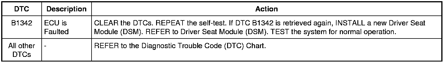 Driver Seat Module (DSM) DTC Chart