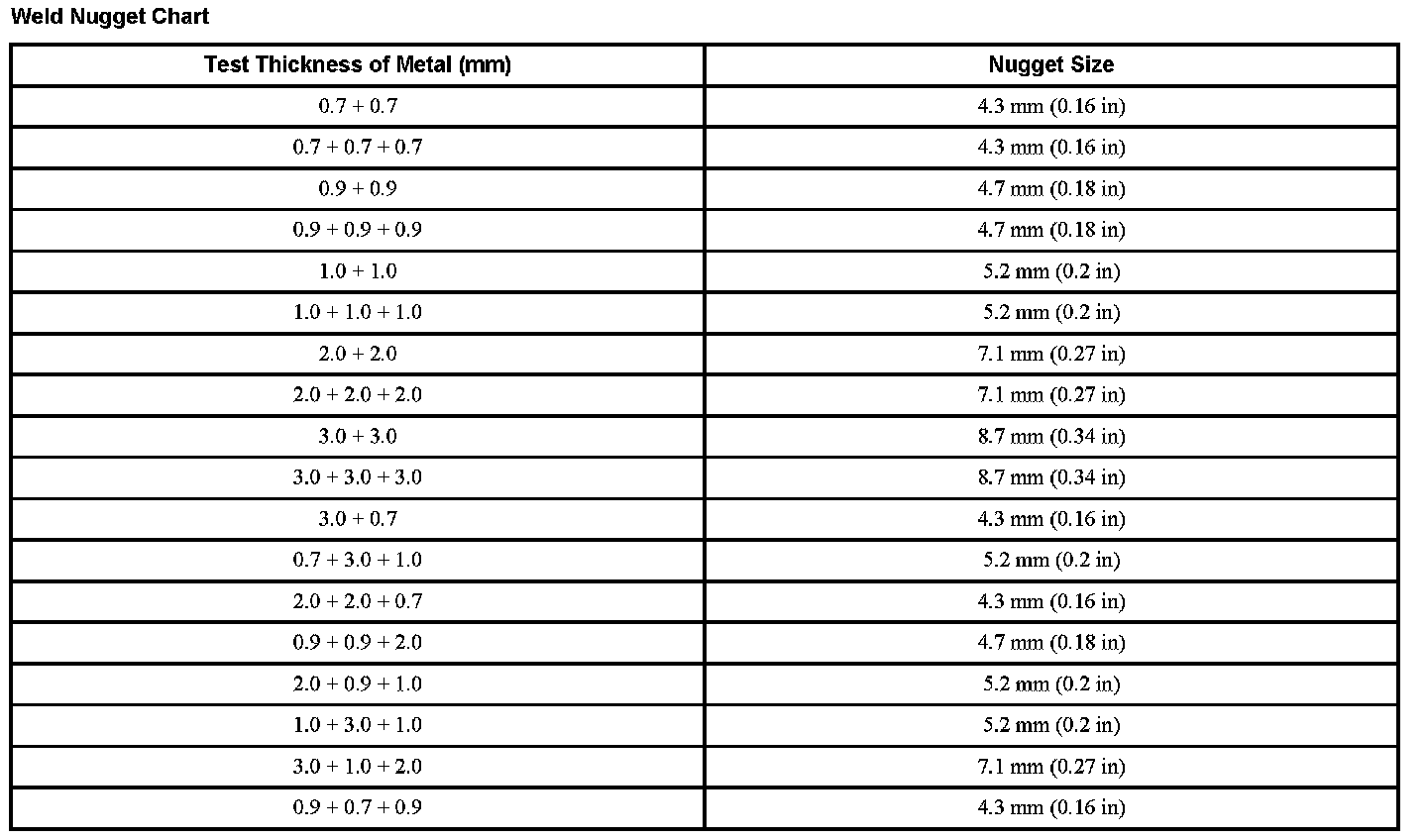 - Factory spot welds may be substituted with either STRW or MIG plug welds. Spot/plug welds should equal factory welds in both location and quantity. Do not place a new spot weld directly over an original weld location. Plug weld hole should equal 8 mm (0.31 in) diameter.