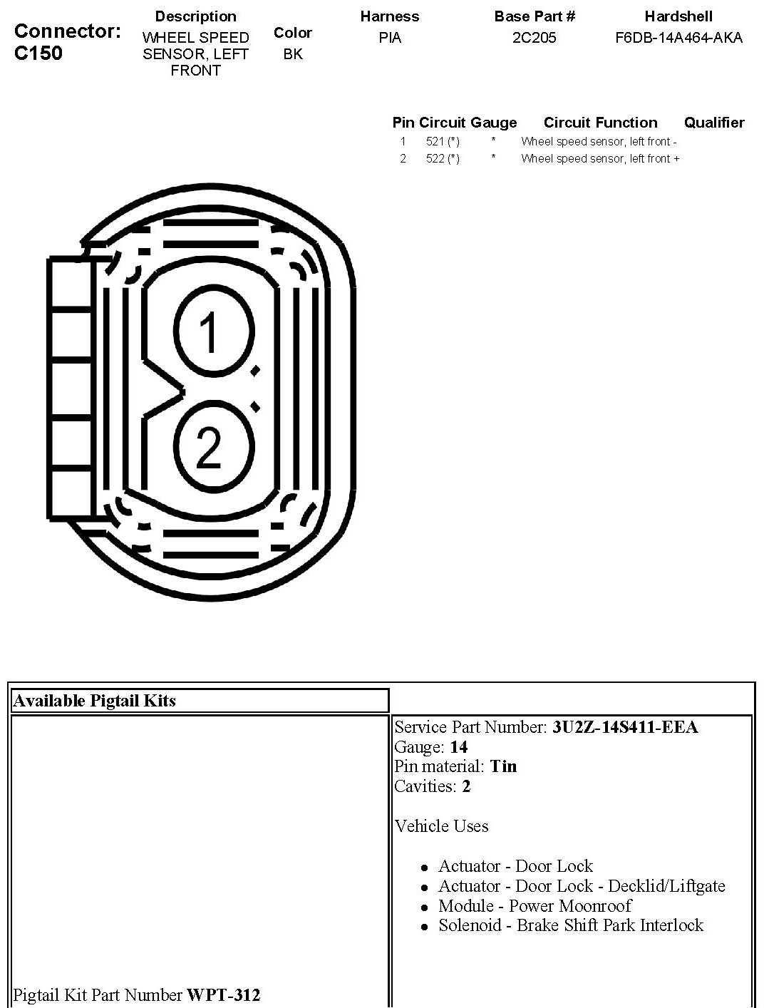 Wheel Speed Sensor, Left Front