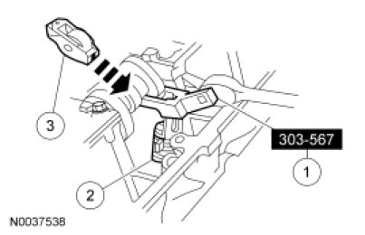 46. Remove the Hydraulic Chain Tensioner Retaining Clip from the LH timing chain tensioner.