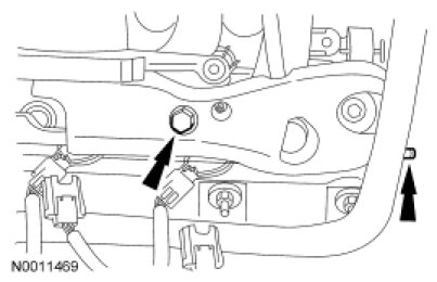 86. Install the intake manifold crash bracket bolt and loosely install the bolt and the stud bolt.