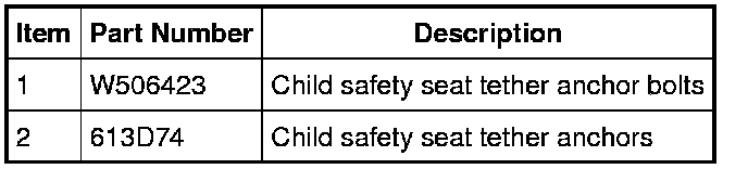 3. WARNING: Always tighten the child safety seat tether anchor/bolt to specification. Failure to follow this instruction may result in the child's safety seat being incorrectly secured, which increases the risk of serious personal injury or death to the child in a sudden stop or crash.