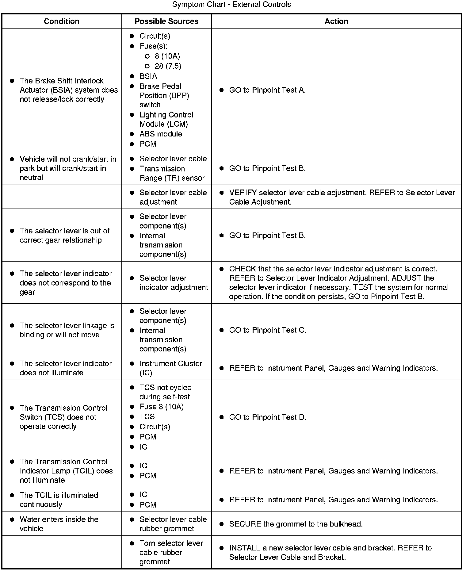 Symptom Chart - External Controls