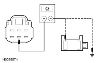 - Measure the resistance between the inoperative rear window control switch, harness side and the driver window control switch, harness side; and between the inoperative rear window control switch, harness side and ground as follows: