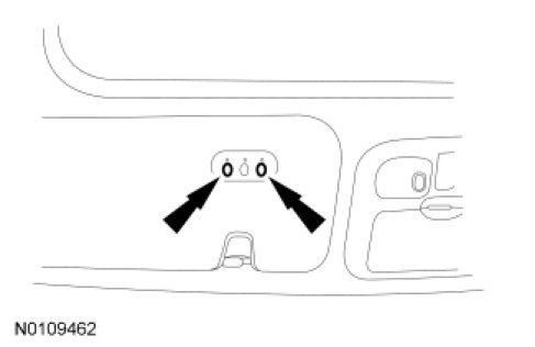 1. To erase the rolling code programming from the Lear Car2U(R) System, turn the ignition key to the ON position, firmly press and hold the 2 outside Lear Car2U(R) System buttons at the same time for approximately 20 seconds until the 3 red indicator lights begin to blink rapidly.