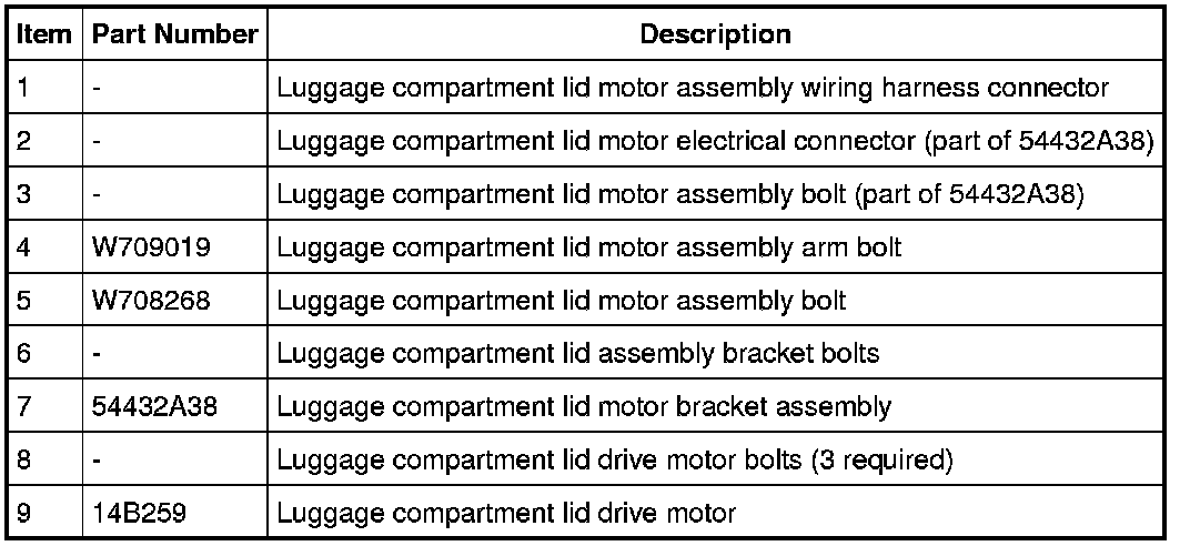 8. If required, remove 3 bolts and the luggage compartment lid drive motor.