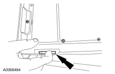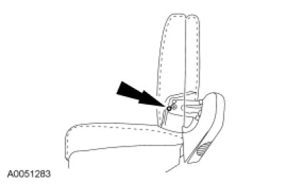 2. From the left side of the seat armrest, push in on the locking tab to reset the armrest impact locking pin.