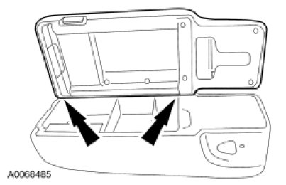 3. Place the seat armrest lid onto the passenger side of the seat armrest base and pull the lid toward the driver side until the lid and base have maximum engagement.