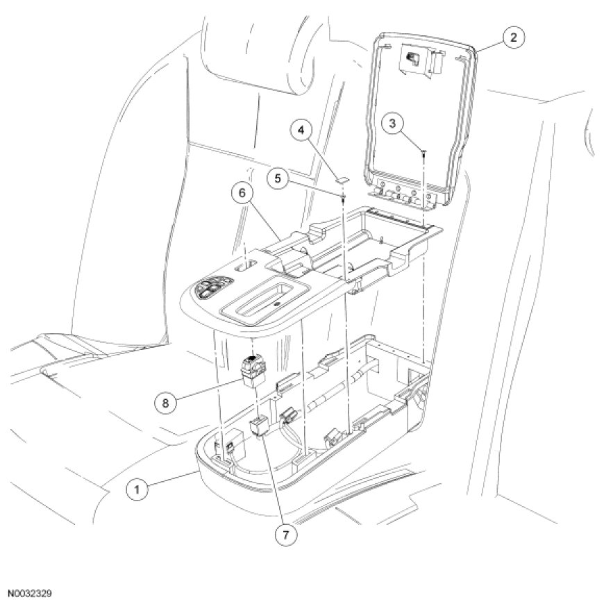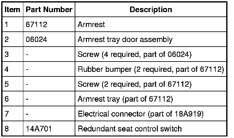 1. Open the armrest, remove the 4 screws and armrest tray door assembly.