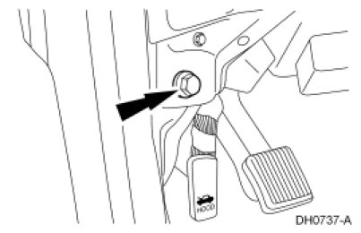 13. Remove the steering column brace-to-parking brake control bolt.