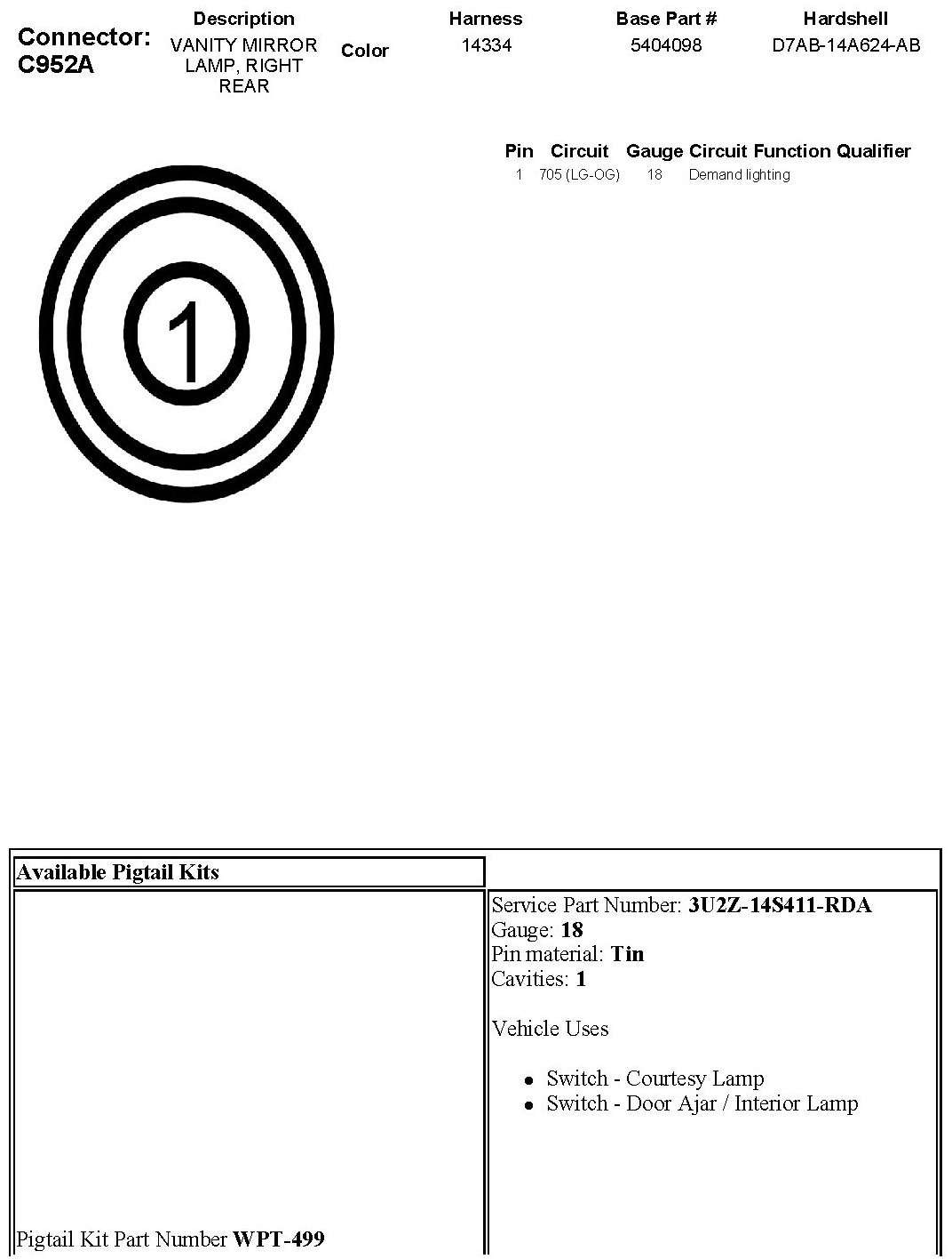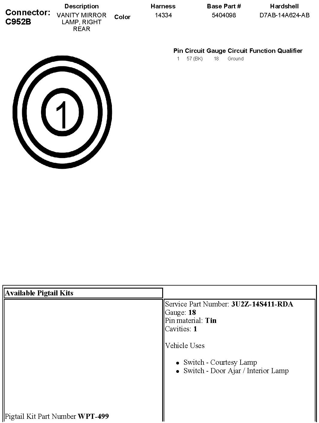 Vanity Mirror Lamp, Right Rear