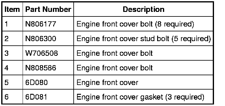 4. Tighten the front cover fasteners in the sequence shown to 25 Nm (18 lb-ft).
