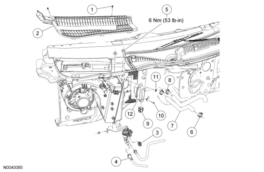 7. Release the 2 heater outlet hose clamps and remove the heater outlet hose.