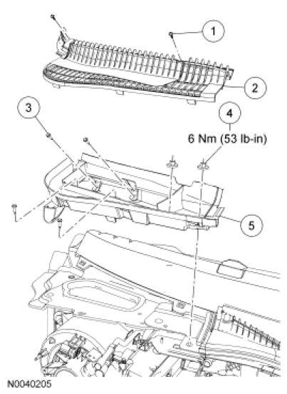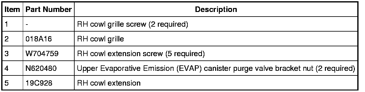 3. Remove the RH cowl grille.