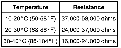 - Note the ambient temperature and compare the in-vehicle temperature sensor resistance with the table below.
