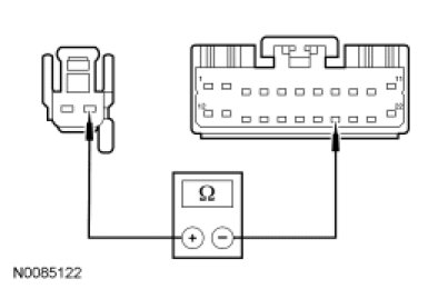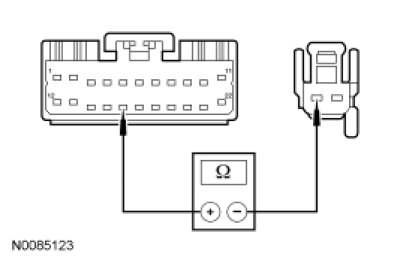 - Measure the resistance between in-vehicle temperature sensor C233-1, circuit 3058 (LG/RD), harness side and C233-2, circuit 3059 (YE/LG), harness side.