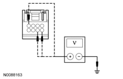 - Measure the voltage between the message center switch, harness side and ground as follows: